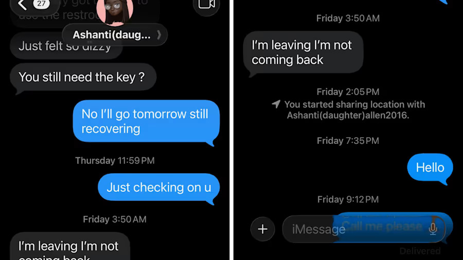 Ashanti Allen’s last text message to mother on April 10 before she went missing. (Copyright 2026 by KPRC Click2Houston)