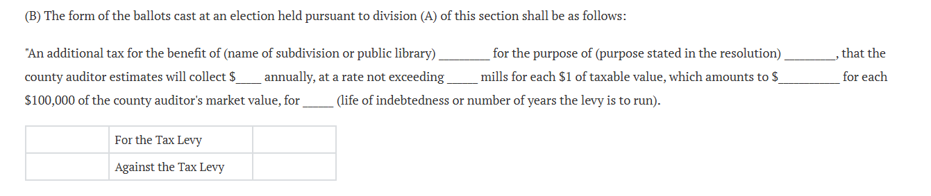 When voters review ballot language for local levies, they are reading wording largely determined by the state. Ohio law requires bond issues and levy requests to follow specific language guidelines.